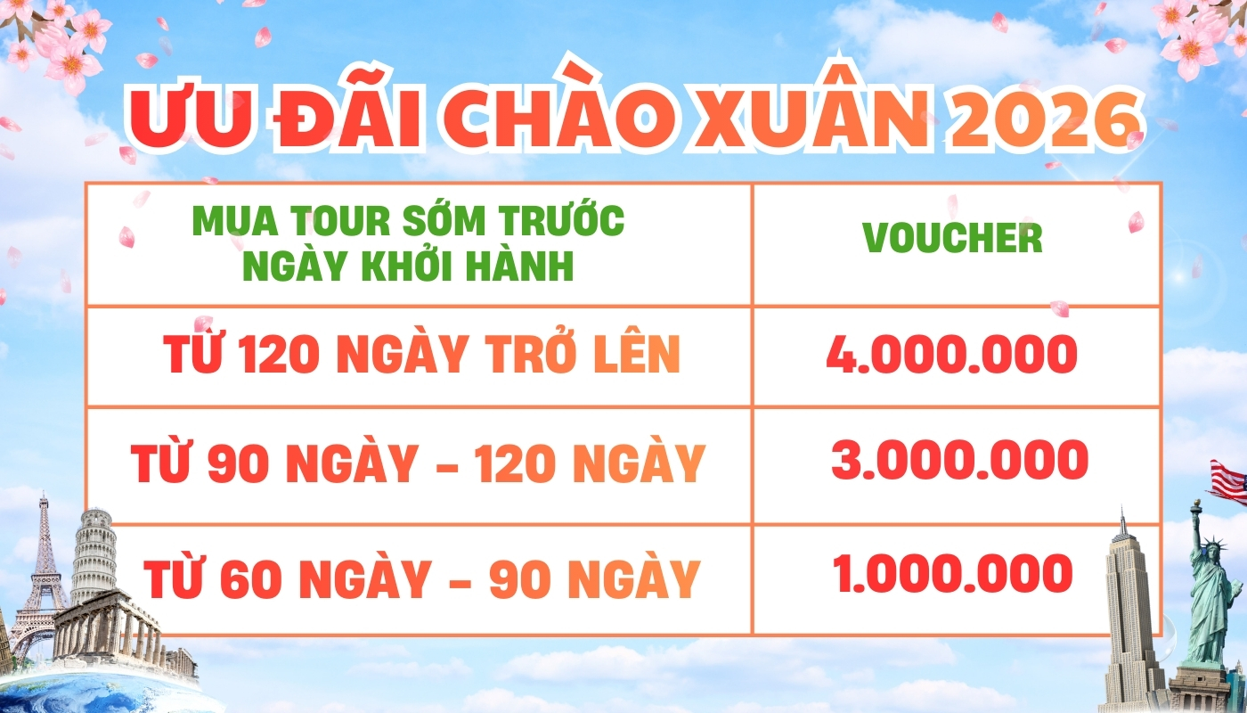 2026 – TOUR CHÂU ÂU M1 TẾT – PHÁP – LUXEMBOURG – BỈ – HÀ LAN – ĐỨC
