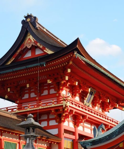 - Đền Fushimi Inari (đền 1000 cột) thờ phụng Inari – vị thần phù hộ cho mùa màng bội thu và kinh doanh phát đạt. Con đường với những cánh cổng Torii màu cam rực rỡ dường như vô tận chạy dọc lên núi Inari tạo nên một khung cảnh ấn tượng và là một trong những hình ảnh nổi tiếng nhật Nhật Bản.