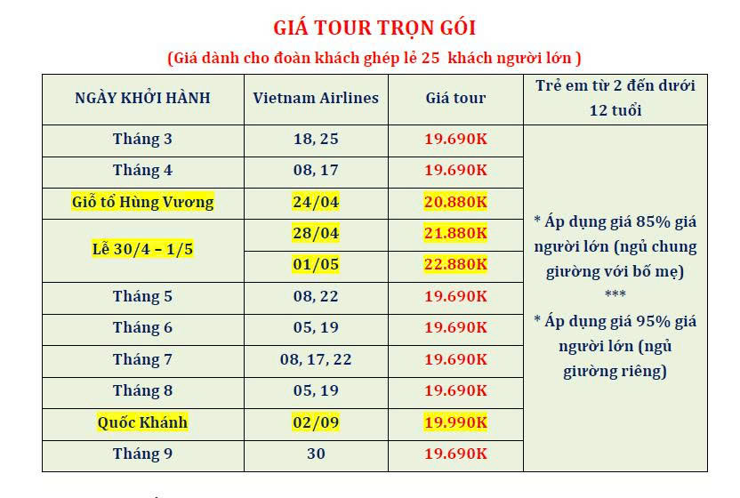 - Chương trình và giờ bay có thể thay đổi tuỳ theo ngày khởi hành cụ thể