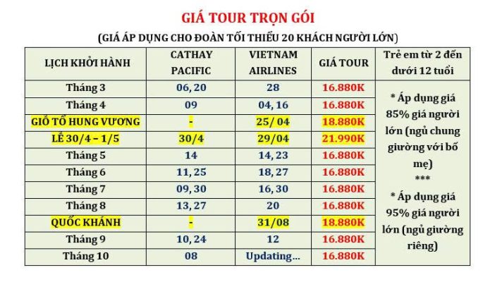 - Chương trình và giờ bay có thể thay đổi tuỳ theo ngày khởi hành cụ thể