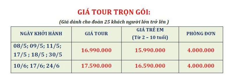 Hành trình trên có thể thay đổi thứ tự sao cho hợp lý nhưng đảm bảo sẽ cung cấp đầy đủ các điểm tham quan.