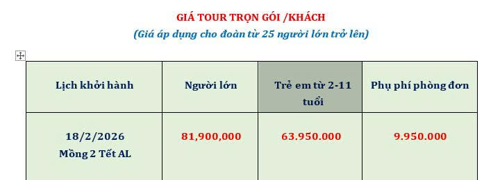 Ngày khởi hành: 18/02/2026 – Mùng 2 Tết