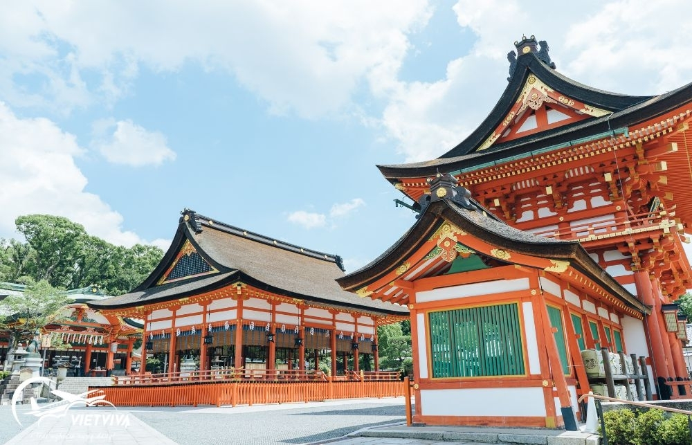 • Đền Fushimi Inari (đền 1000 cột) thờ phụng Inari – vị thần phù hộ cho mùa màng bội thu và kinh doanh phát đạt. Con đường với những cánh cổng Torii màu cam rực rỡ dường như vô tận chạy dọc lên núi Inari tạo nên một khung cảnh ấn tượng và là một trong những hình ảnh nổi tiếng nhật Nhật Bản.