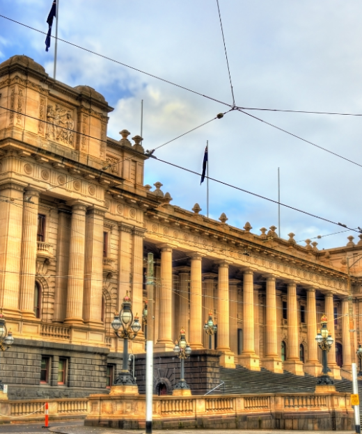 - Tòa thị chính (City Town Hall) – Tòa nhà Quốc hội bang Victoria là công trình công cộng lớn nhất vào thế kỉ 19 của Úc, và là ví dụ điển hình cho lối kiến trúc dân sự của đế quốc Anh.