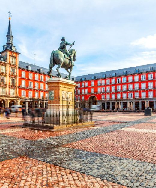 - Quảng trường Plaza Mayor – có sức chứa 50.000 người, là một trong những quảng trường đẹp nhất châu Âu. Du khách có thể ngồi đây thư giãn với ly café hoặc cốc bia tươi thật là sảng khoái. Quảng trường nổi bật với những ngôi nhà được sơn màu đỏ rực rỡ cùng các ô cửa sổ xếp san sát nhau tạo nên một khung cảnh vô cùng ấn tượng với tượng đài của vua Felipe III, tượng đài Don Quixote.